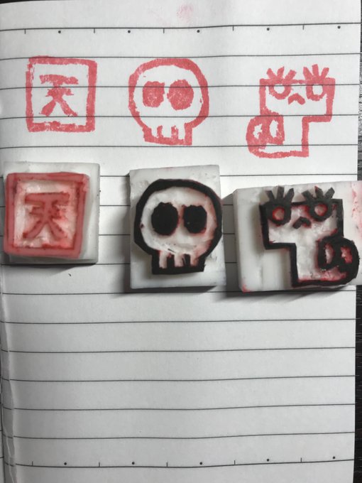 一個増えた(°▽°) 逆向きに掘ってしまったことを深く反省………可愛く掘れたから許してッッッ #wrwrd #しろっぽ #消しゴムはんこ