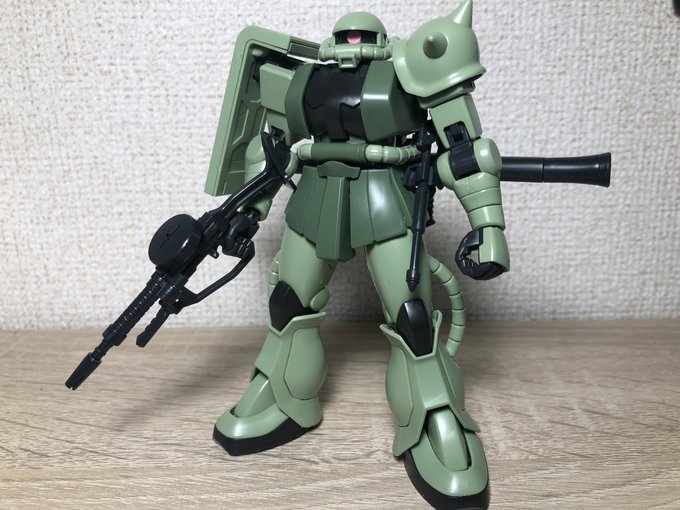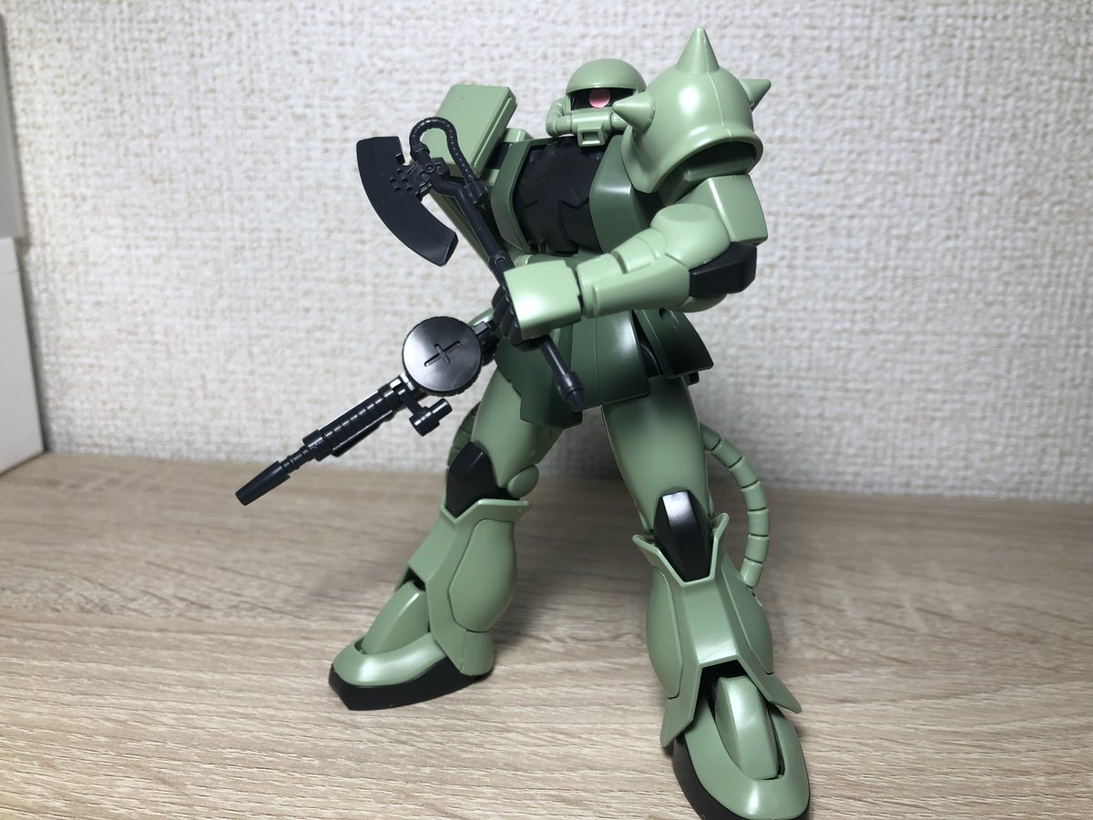 HGUC ザクII(リバイヴ)作りました! モノアイは付属シール貼ってます! シャアザクのカラバリ( ˙-˙ ) リバイヴだけあって可動域は良し✌️ #ガンプラ #ガンプラの画像貼るとRTされると聞いて #ガンプラ好きと繋がりたい