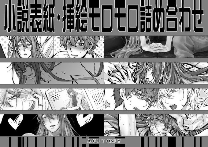 15 33 ◆新刊-2◆ 『小説表紙・挿絵モロモロ詰め合わせ』 モノクロ/B5/32p/400円 なるしまさんの小説で描かせていただいた表紙や挿絵、関連するラクガキなどをまとめた本。コピーで先出した時から色々手を加えてたり、おまけ2p追加と私の絵になるしまさんのSSを付けてもらったスペシャルゲスト1p有り。 23/07/27 00:04