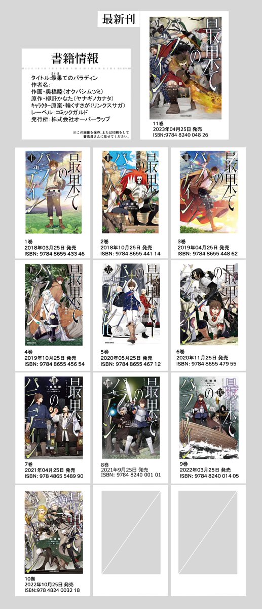 【宣伝】4月25日発売のコミカライズ版・最果てのパラディン11巻の書影が出ました!11巻は担当さんのおかげで過去最多ボリュームです😭🙏今回も表紙を世古口様(@atcoil)にかっこよくして頂きました…!表紙全体図はまた発売日にあげます!どうぞよろしくお願いいたします!🙇comic-gardo.com/episode/316190…
