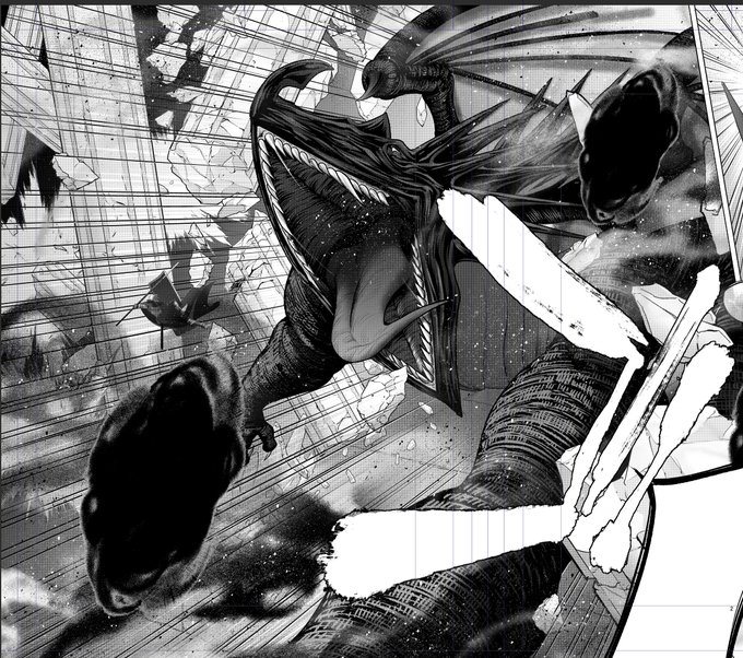 今やってる原稿、最後のしあげいい感じになってきてるのでちら見せ尻たたき ヴァラキアカ戦闘でずっとたのし~~~!!!😆😆てなってるのでこっちもニコニコになってしまう こんな感じのドラゴン戦が始まった最果てのパラディンをお盆休みにぜひ!!→最果てのパラディンIamzn.asia/d/gQ76UUw