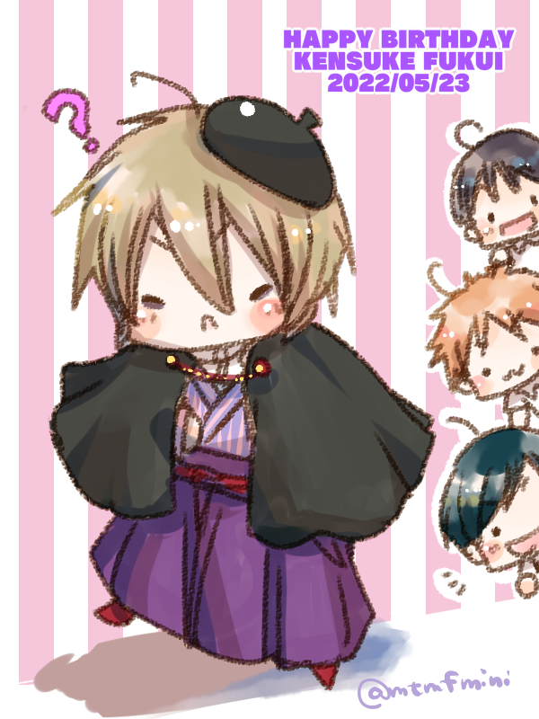 #福井健介生誕祭2022 ふくい「しょうわ レトロ とか なんとか いって きせられたべ・・・」 いづき「にあって ます!」 みやじ「たんじょうび だからな(・~・)-3」 もりやま「いいな そのいしょう モテそうだ! 」