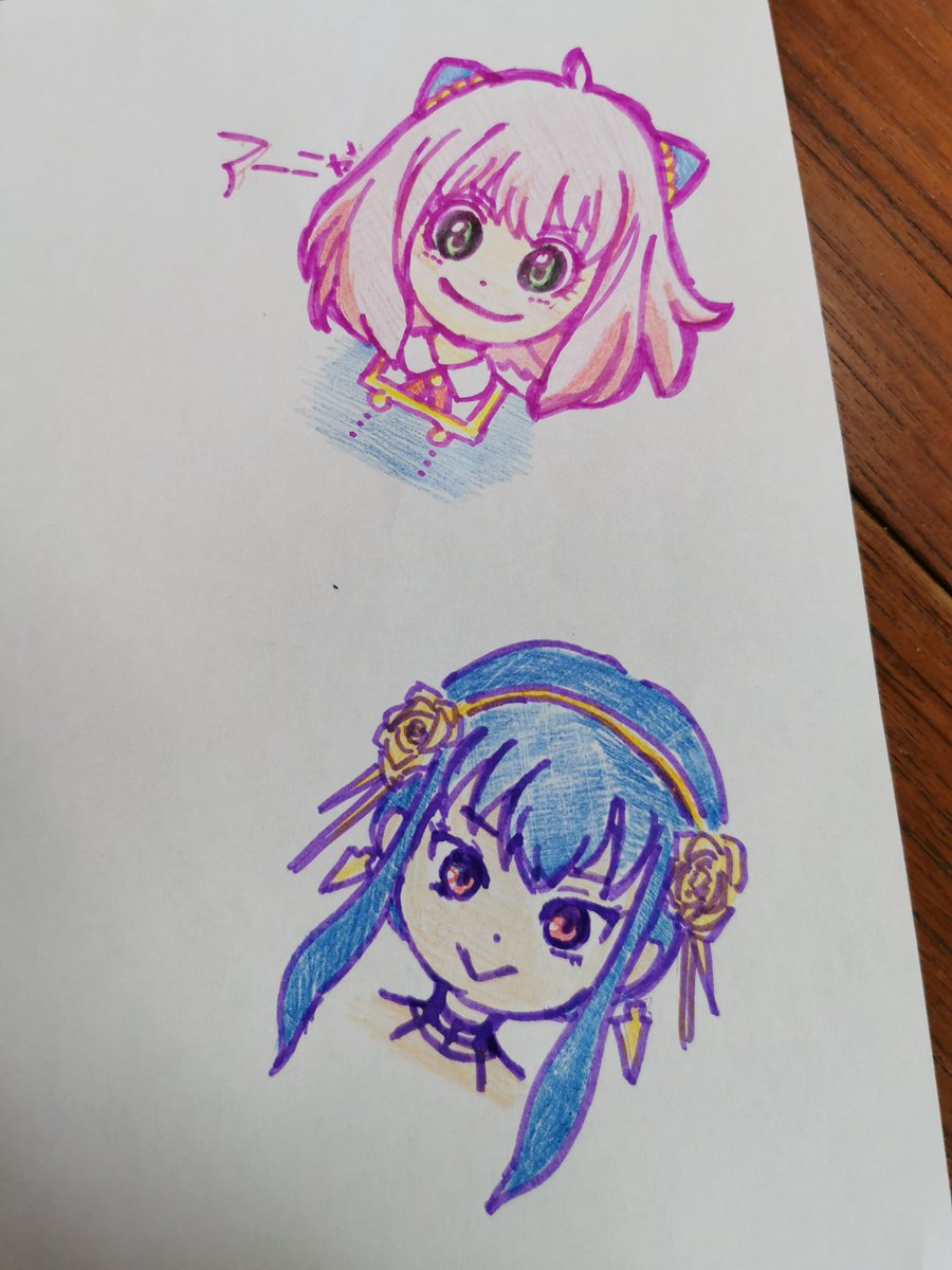 姪っ子たちの「アーニャ描いてー」「ヨルさん描いてー」というリクエストお題を、100均ペン一発描きでこなすという高難易度の実家ミッション。 #スパイファミリー #SPYFAMILY #イラスト #SPY_FAMIRY
