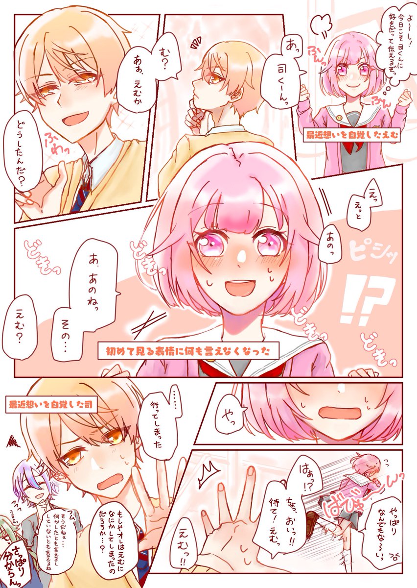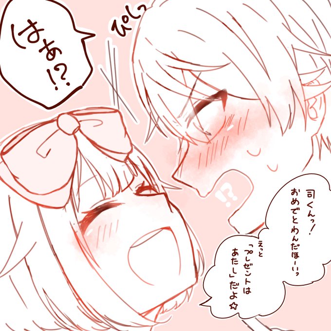 #司えむ版深夜のお絵描き文字書き一本勝負 (@tkem_60min) お題【誕生日】 🌟「……お前、それ。意味は分かって言ってるのか?」 🍬「?? ううん。でもでも、これを言ってあげたら絶対に喜ぶよってみんなに言われたの!」 🌟「…………そうか。その言葉はオレ以外には言うんじゃないぞ」