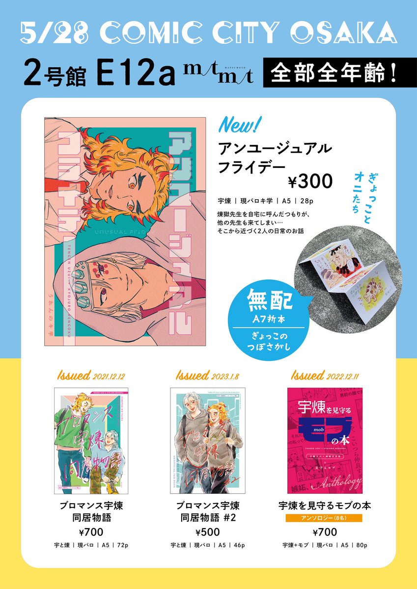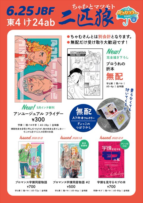🐯通頒のおしらせ🐯 さつぽろ合わせのszrさんとマツモトの合同本ですが、7/22(土)21時より🐯さんのページが開きます。 A5変形36p 全年齢 ゲスト様10名 ⚠️ホカイドイベ合わせのとてもホカイドに寄った本です ⚠️1人あたりのページ数は少なめです ec.toranoana.shop/joshi/ec/item/… サンプルはツリーにて