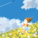 いかんいかん早くしないと春が終わってしまう💦 #子ども #イラスト #春 #たんぽぽ #飛行機雲 タイトル『ひこうきぐも』