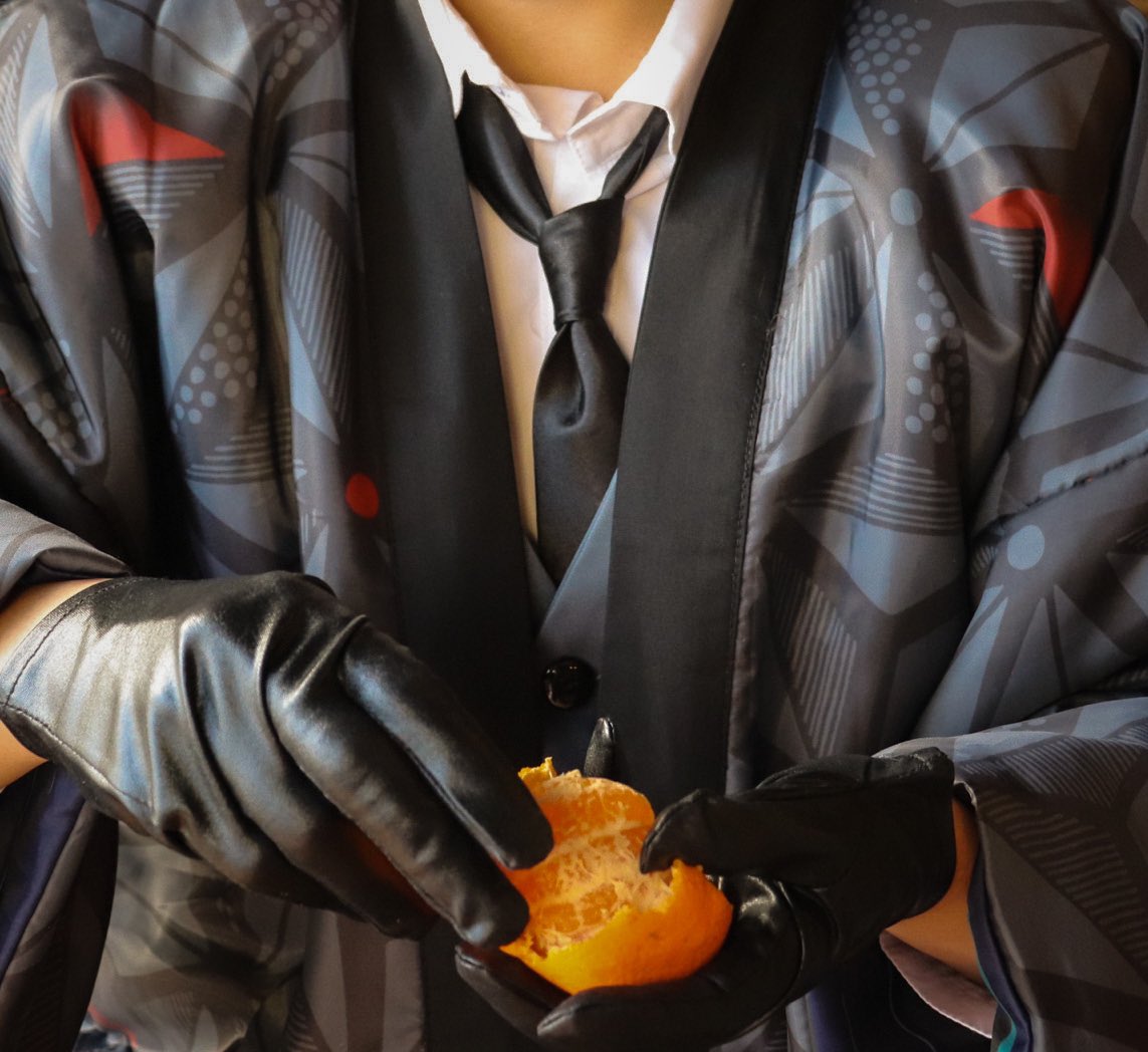 8 24 【Cosplay】 ⚠️捏造服(半纏) 刀剣乱舞 / 燭台切光忠 ______________________________ 寒くなってきたし、 そろそろ蜜柑が美味しい季節、かな? ______________________________ #虹コス photo:游名塚(@yu_72ka ) 22/11/17 19:51