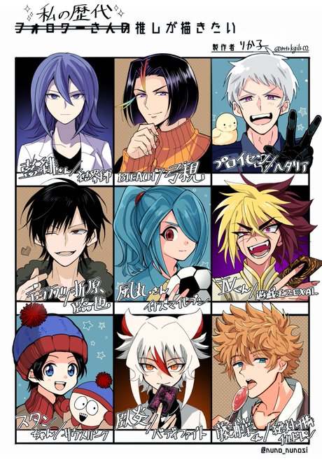 私の歴代推しキャラたちを描きました。知ってる子がいたら握手してください🤝