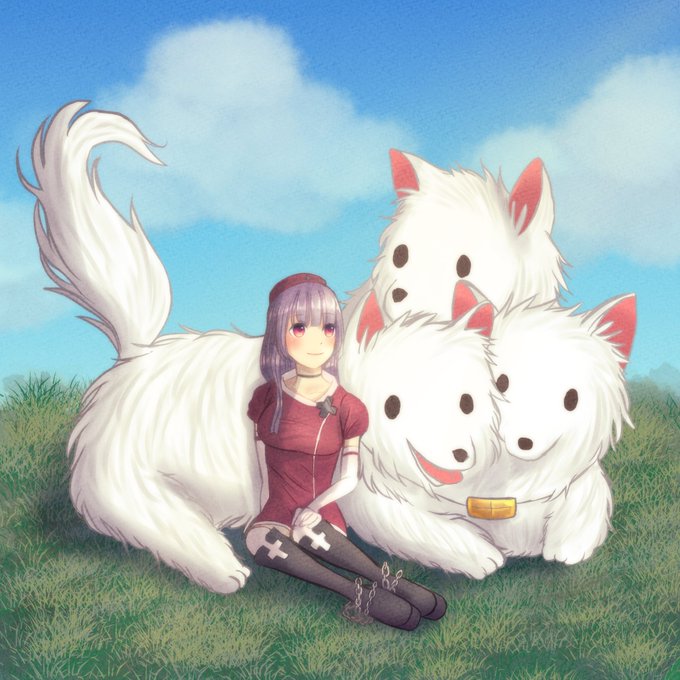 28 110 へるべろすと日向ぼっこする六道冥 #あーと冥土 #いろいろな六道冥 19/08/13 20:28
