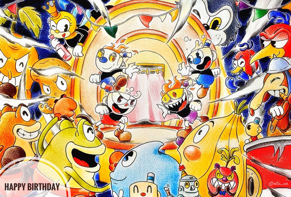 #HappyBirthdayCuphead #Cuphead 過去絵ですが3周年おめでとう〜!!!✨