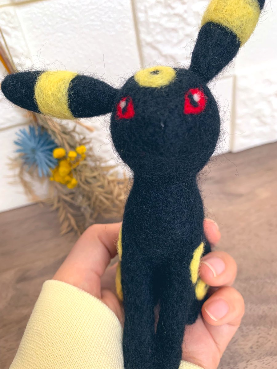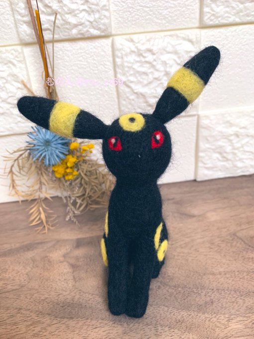 10 48 お座りブラッキー完成しました🌙 作るのも、黒すぎて撮影するのも大変でした😭 #羊毛フェルト #ポケモン #ブラッキー 22/05/16 15:01