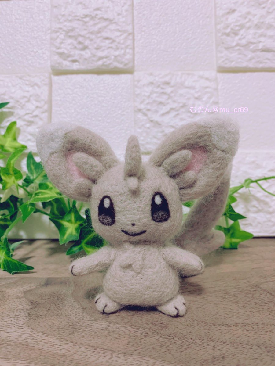 紹介します! エモンガのおともだちのチラーミィです💫 高さはエモンガと同じくらいです! よろしくお願いします🍀 #羊毛フェルト #ポケモン #チラーミィ