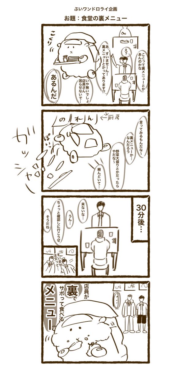 #ぷいワンドロライ 企画参加させていただきました🙌 自分じゃ思いつかないお題に沿って描くの楽しかった✌︎ お題:③食堂の裏メニュー 【1h +25min】