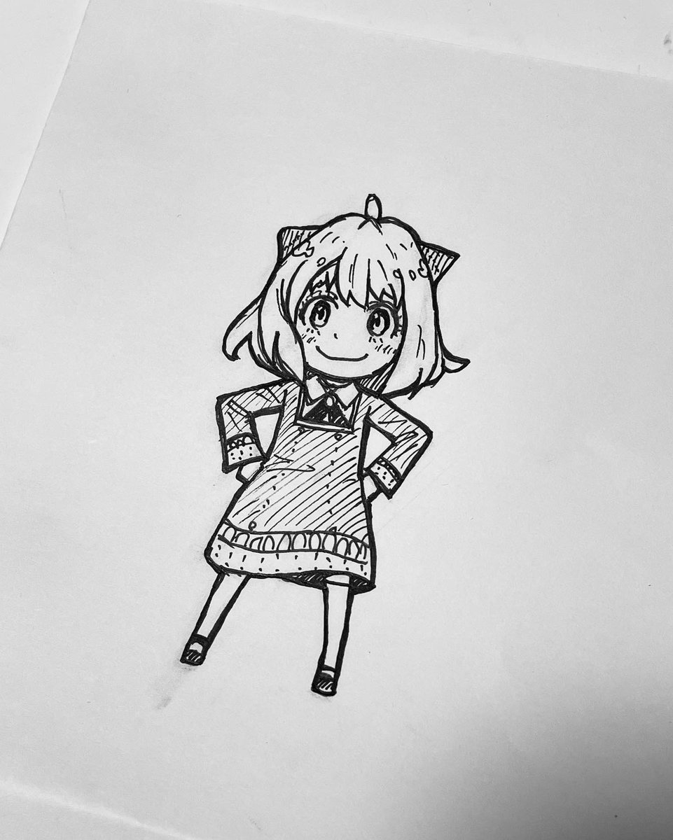 1 14 次女に頼まれて描きました。久しぶりのアナログ。老眼鏡アリ。風の噂でしか知らないアーニャという方です。勉強になりました。 22/11/04 20:11