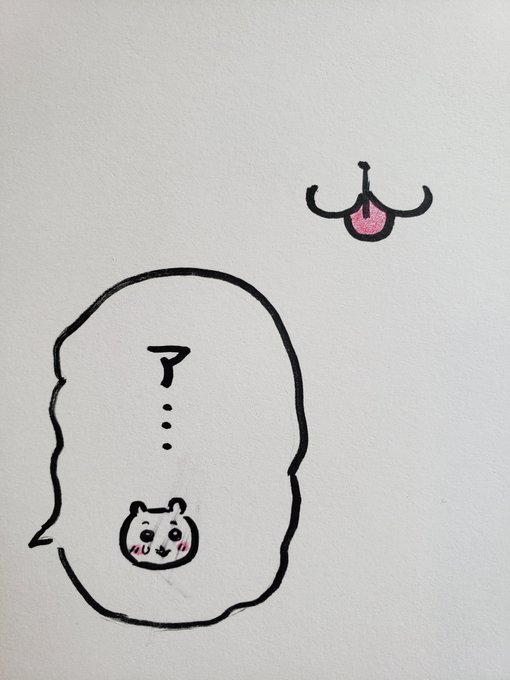 えッ すごッ こわくないの!? ハチワレちゃんの舌ペロのお口って可愛いよねッ ラクガキしてみたよ ちいちゃんは滲んでしまったァ🤣 エト...この吹き出しに出てくる小さい顔の絵もすごい好きなんだァ みんなもそうだよね🥳 #ちいかわ #ちいかわファンアート #ちいかわ好きな人と繋がりたい #ちい活
