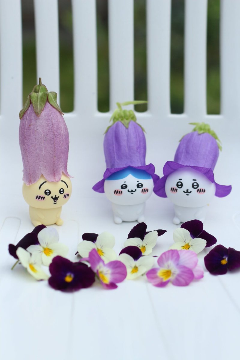 おは妖精さん🧚♀️ 花のお帽子シリーズ② 庭のビオラがもう終わりだから最後に撮ってみたよ うさぎだけタコさんウィンナーっぽいのを被せた🐰耳が長いから安定感ある🤣 ちいちゃんは頭が大きいのかズレまくって大変だったよ😂でも一瞬のチャンスでパチリ📷 #ちいかわ #ちいかわファンアート #ちい活