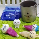 わァ…あ... 巨 クッキー🍪とコーヒーのおもてなしがあるプチキャンプに来たけど…ちいちゃんだけモモンガに『貸してみろ』ってお花の寝袋を取られて泣いちゃったよ 🐰は自分色の寝袋がパツパツで『フゥン』と思っている お外で飲むコーヒーが美味しい季節よねッ #ちいかわ #ちいかわファンアート