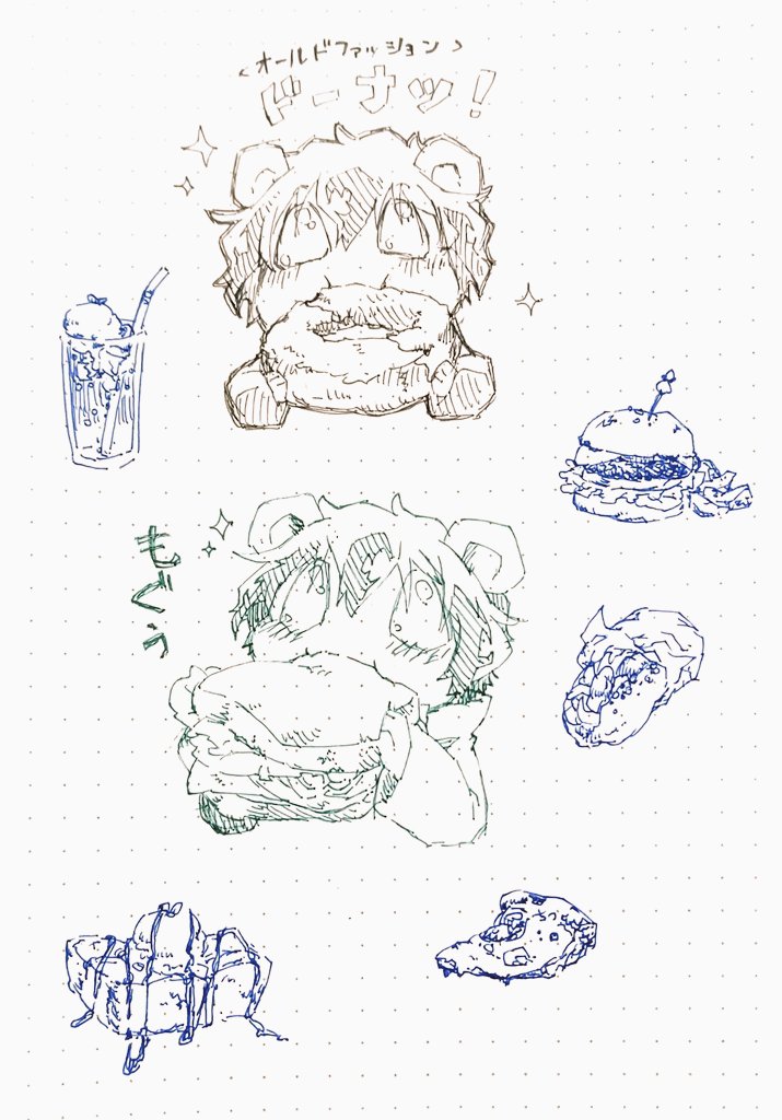 この間描いたたぬのまわりに思い付いた食べ物を描いていくアナログらくがき