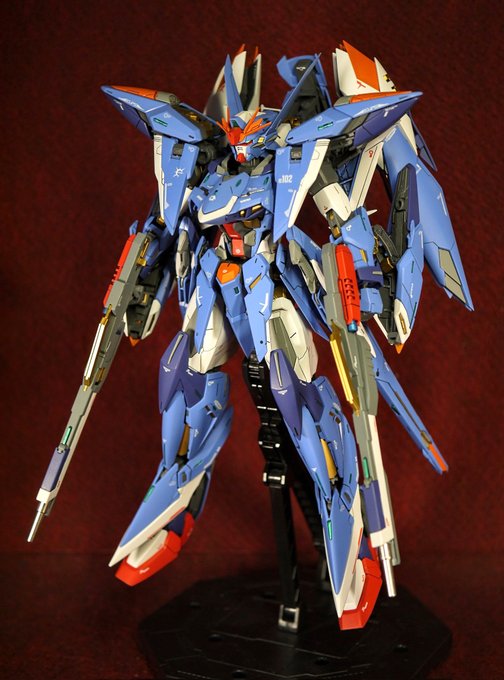 25 105 HGUCシナンジュスタイン 撮影完了! オービタルと合体させました プロペラントタンクもごついブキヤタンクに変更 今回はNAZCAのフレイムレッドとコバルトバイオレットで鮮やか感出たかなと 23/07/11 17:18