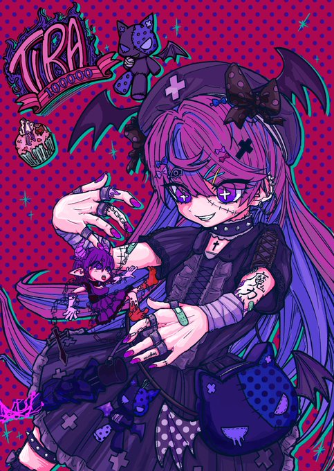 100000おめでたファンアート💜 てぃらちゃん絵の虜になっている図 お気に入りヴァンパイアちゃん✨ @tira_27 #ファンアート twitter.com/tira_27/status…