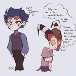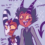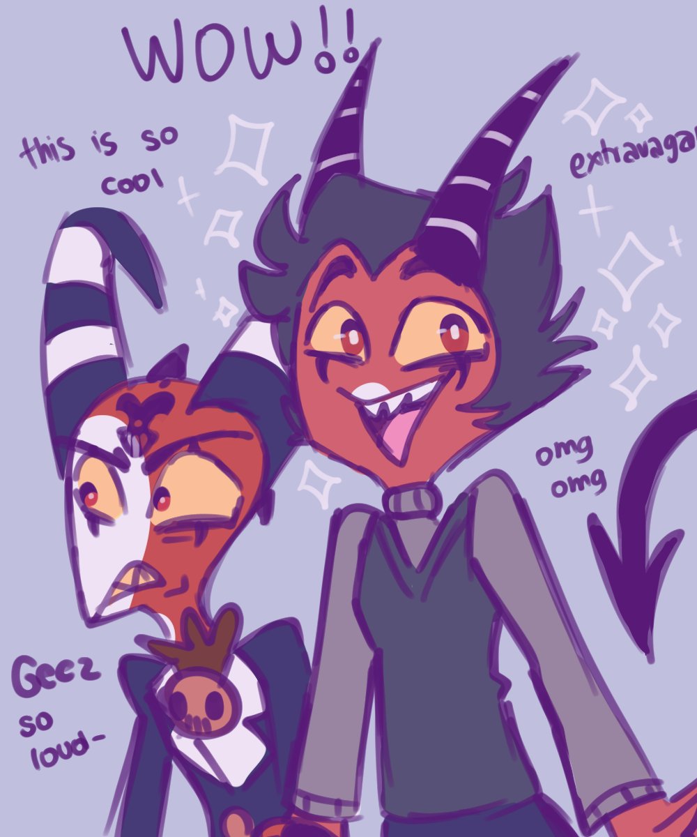 I reaally like @DaniDraws666 's Stolas imp design and remembering a thread I read a while ago of Stolas trying to learn abt imps, I can only imagine him acting like this. #HelluvaBoss #stolas #blitzo