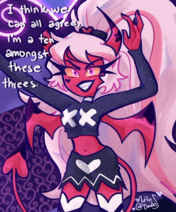I did the first four I was requested.. I'm sorry, I didn't mean to do many. My files exploted while making the Blitzo and Striker one so it looks weird but at least I drew characters I'm not used to #HelluvaBoss #HazbinHotel #chaggie #verosika #kiki #striker #blitzo #fizzarolli