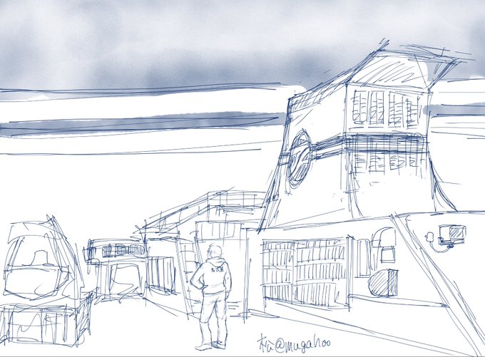 #船舶擬人化ワンドロ特別版 使用お題:台風 仙台港で2隻並んでたやつ🛳🛳 @ofune_1draw