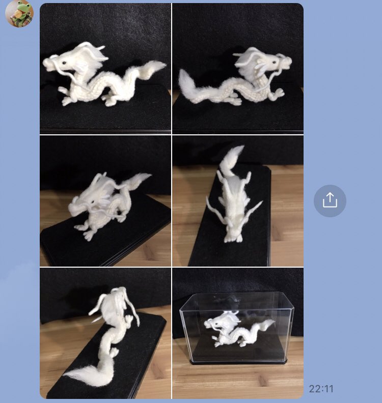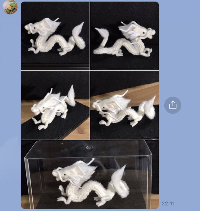 4 28 この画像の白竜は親白竜を小さく仕上げた物なので 以前仕上げた親子セットと違い 体のサイズが小さい分 身体つきに細かい部分があり 以前のとはまた違う新たな手法を考え完成させたみたい👍🎉⤴️ インスタ覗いてやって下さーい kero_keroruです。 #拡散希望してます #kero_keroru #白龍 #羊毛フェルト 21/07/27 20:00