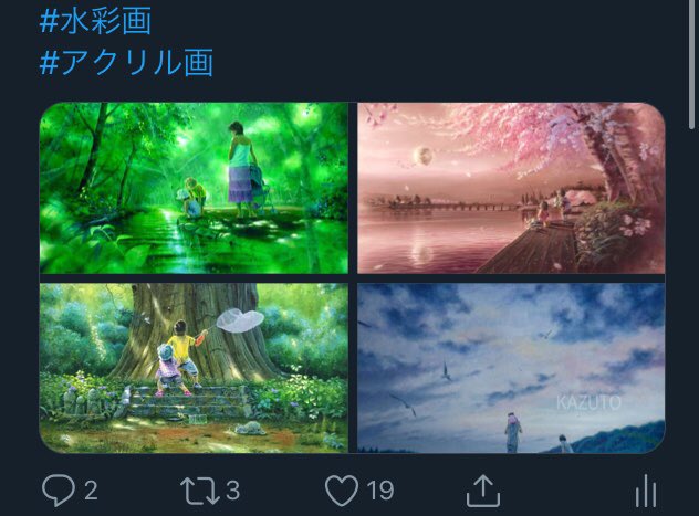 0 8 これから学んでいく沢山の事も、これは良いなぁと思う事は、多分全てホンマに 出していこうと思うので、興味ある人は 遊びに来て下さいね! まだまだ先やけど 動画も沢山出していくつもりです。 ではまた宣伝しにきます! #アクリル画 #水彩画 19/12/16 15:54