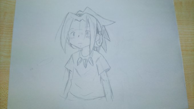 #イラスト #練習 #リハビリ #シャーマンキング #麻倉葉 #色鉛筆 葉くん、出来ました! 今回も君の前髪に泣かされましたとも…😓