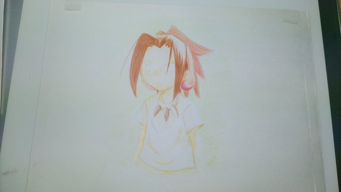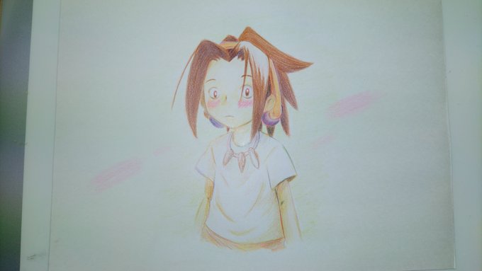 #イラスト #練習 #シャーマンキング #進捗 葉くんの途中経過。 今回は色鉛筆のみで塗ってみてます。 白目怖いにゃー