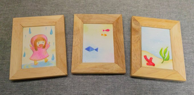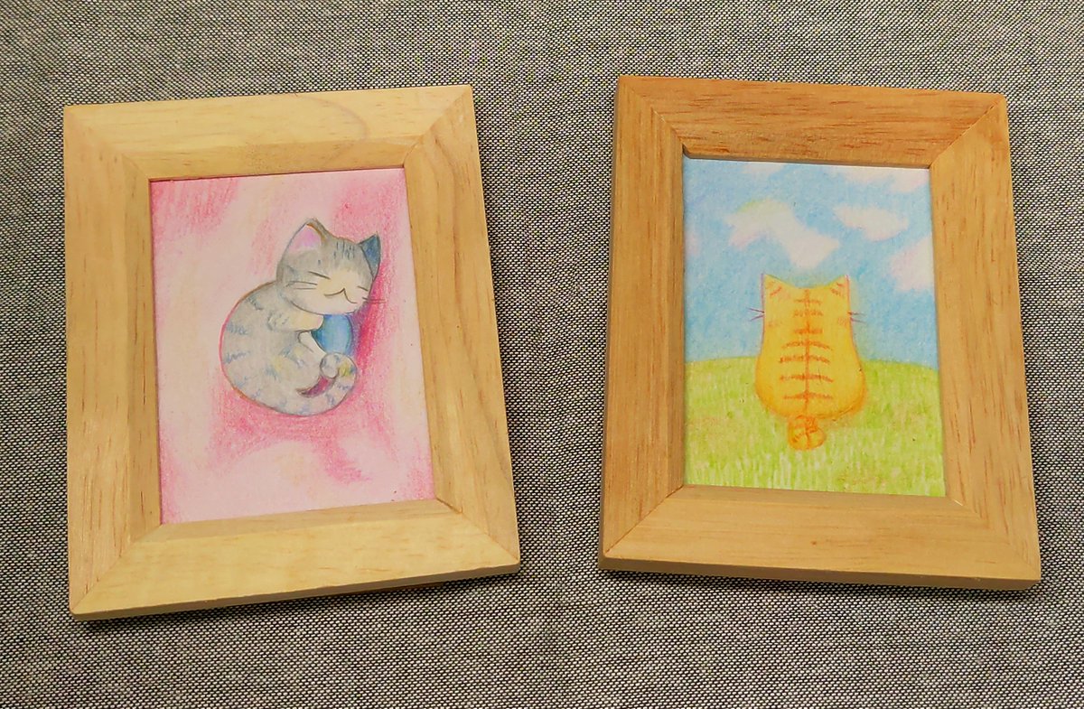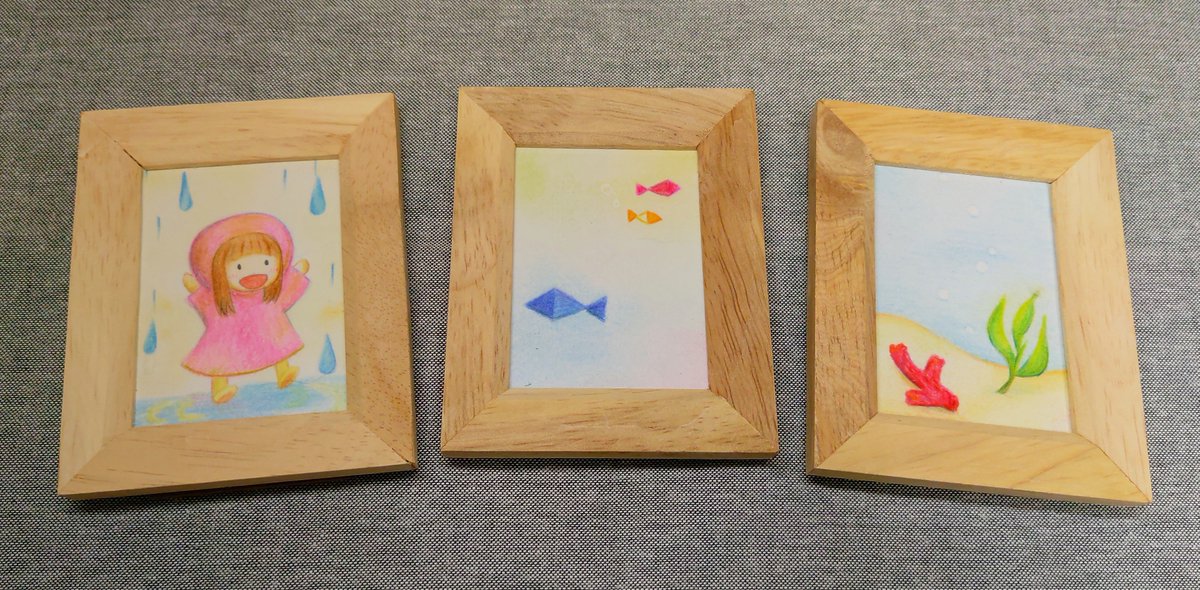 #イラスト #色鉛筆画 もう5種類できました〜✨ まさか描くよりも額のバリ取りに時間がかかるとは思いませんでした😓 明日以降のイベントで販売します!
