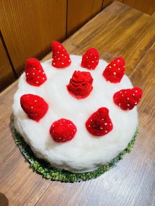 0 4 イチゴのケーキ作ってみました #羊毛フェルト #イチゴ好き 21/06/19 15:27