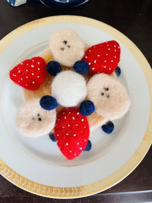 0 6 #バナナの日 #羊毛フェルト ホットケーキ食べたいな(*´ω`*) 21/08/07 11:52