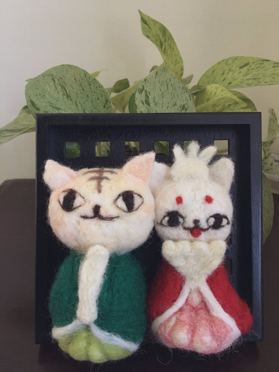 お内裏様に冠をつけてみた(*´ω`*) #羊毛フェルト