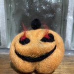 #ジャック・オ・ランタン #羊毛フェルト 去年のは可愛く作ってしまった 今年は恐ろし系で目から炎出してみた