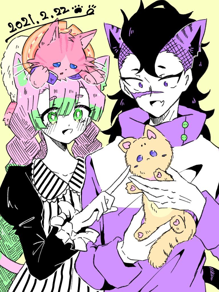 5 20 一日遅れの猫の日〜🐱🐾🍀 おばみつ、さねげん前提 二枚目はおまけなんだけど、おまけが描きたかった節ある……😂 彼女(?)組と一緒に写ってる猫ちゃんはマドルチェ・ミィルフィーヤちゃんとメルフィー・キャシーちゃんです🐾💓 21/02/23 18:53