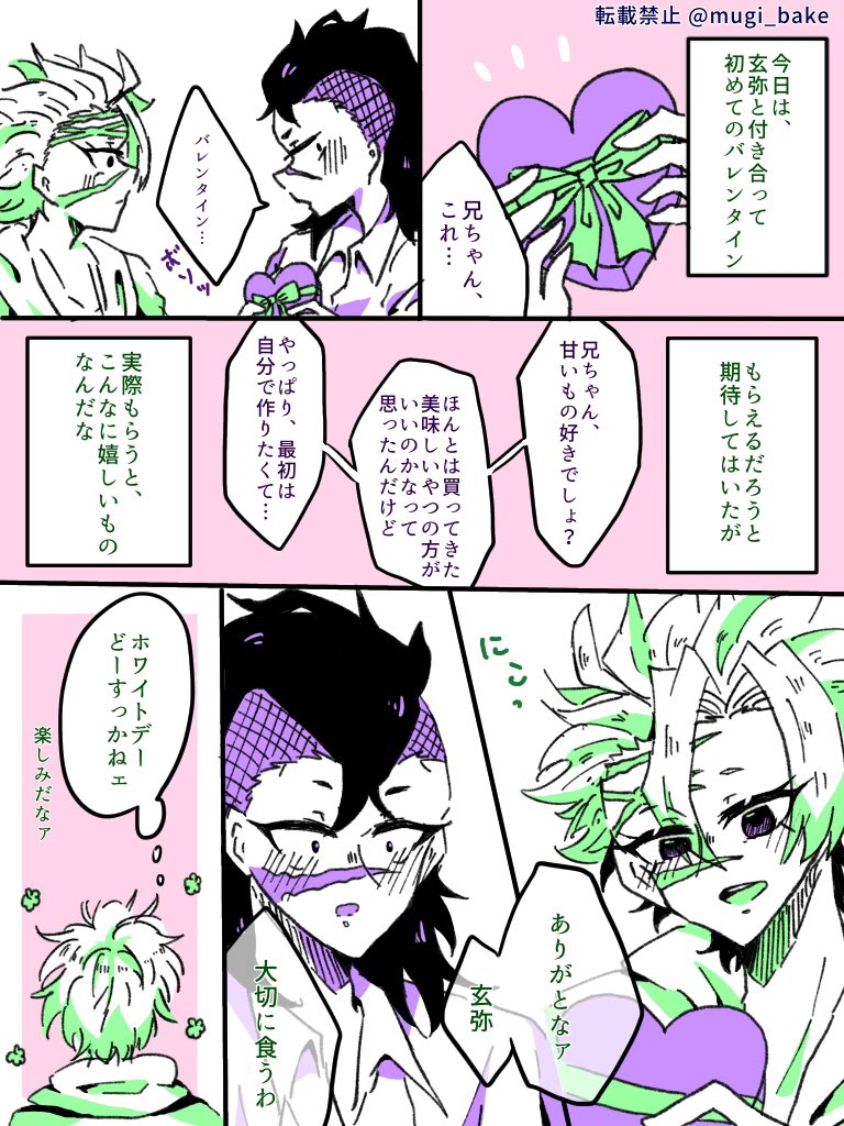 3 13 #実玄版深夜の真剣60分一本勝負 初参加失礼します🙇♂️💦 お題「バレンタイン」で参加させて頂きます✨ 遅刻&オーバー失礼いたしました💦💦💦 ※兄ちゃんの傷描き忘れてたので再掲 21/02/15 10:50