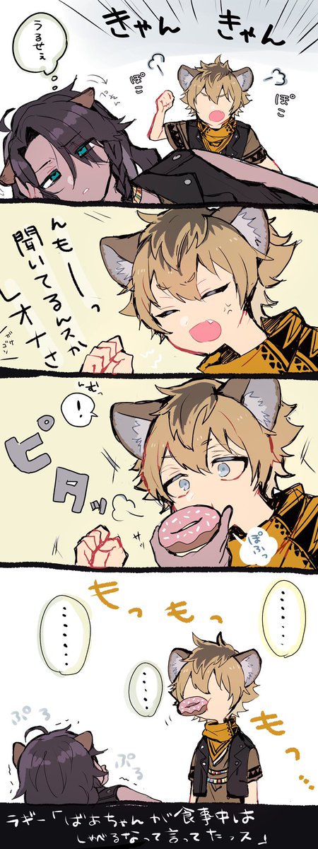413 2403 口に食べ物突っ込まれると問答無用で黙っちゃうラギくんとそれを知ってて利用するレオナさん🦁🍩 20/06/09 19:21