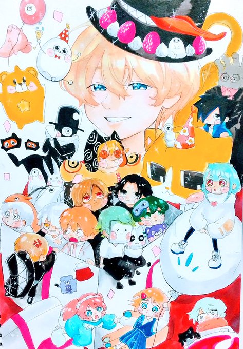 Happybirthday!Eve先生⸝⸝ ᷇࿀ ᷆⸝⸝ いぶくんへ🕊、人外ちゃんいっぱいなホールケーキを作ってみました🎂いぶなー友達と頑張りました🤭❤ 立体ネコさん可愛くでけた🐱 #Eve家 #Eveくん誕生日おめでとう #なんたって今日は記念日バースデイ #Eveくん誕生祭2023