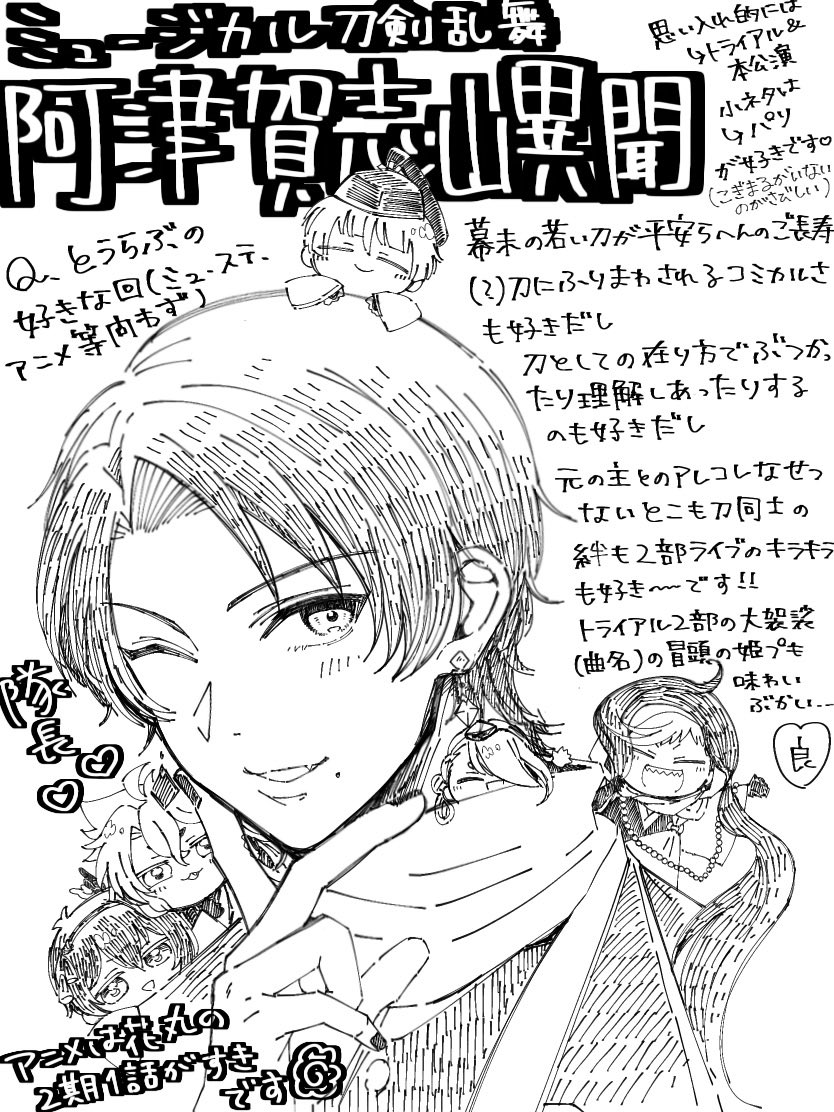 332 1432 ⚠️1/19夜・江おん2部日替わり寸劇レポ(?)絵🎤 描けなかったけどフリータイムのこと「自由時間」って呼んでる光世くんが可愛かったです。 ※めちゃくちゃふわふわな記憶 ※字が小さいので拡大推奨 ※ライブ衣装でしたが作画コスト問題により内番服です(謝罪) 23/01/28 20:00