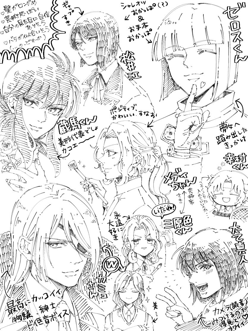 5 17 自分の歴代推し(一部)まとめたらなんとなく好き傾向が大体分かっちゃったらくがき (マスコットぽかったり純朴だったり不憫だったりする巨・人類も好き💘💘💘) 23/04/12 20:11