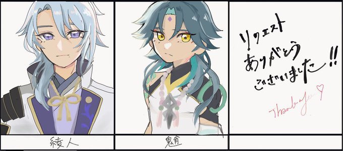 #フォロワーさんの推しが描きたい お待たせいたしました~‼︎🥲 綾人兄様と魈くんです これでリクエストラストです✨ 今回からリプくださった方有難う御座いました🫰🏻ほぼ初描きの子ばかりで新鮮で楽しかったです🫧