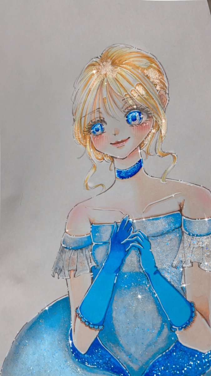 憧れのシンデレラ💎‧⁺ ⊹˚. (過去絵です) #イラスト #プリンセス #シンデレラ #イラスト好きな人と繋がりたい #コピックイラスト #コピック #Illust #illustration #絵描きさんと繫がりたい
