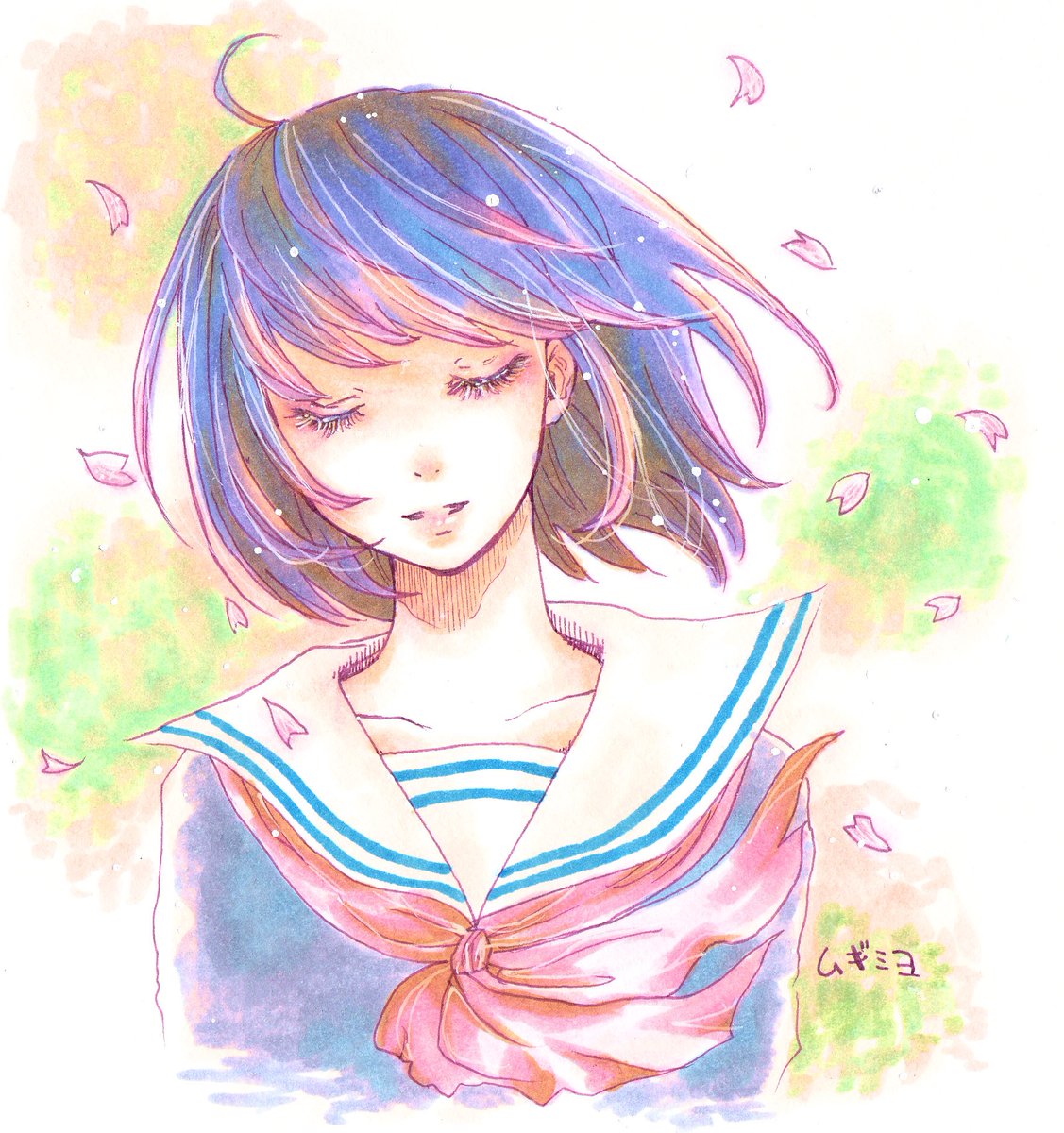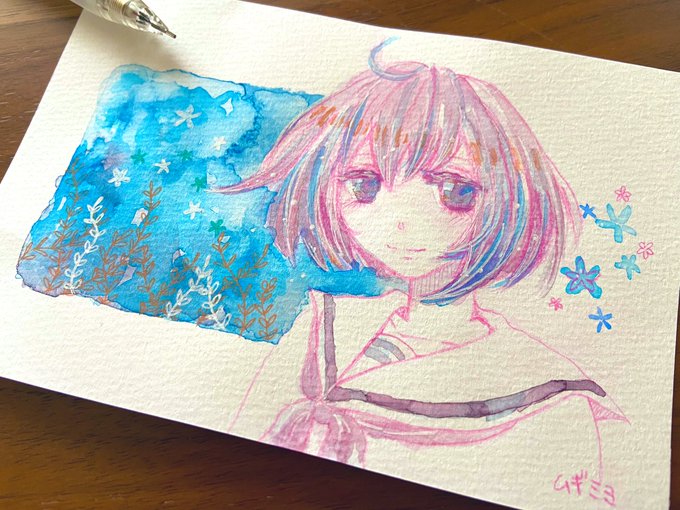 新しい画材使ってみたくてらくがき🌸 ピンクのシャー芯、かわいい◎ #イラスト #水彩 #絵 #イラスト好きさんと繋がりたい