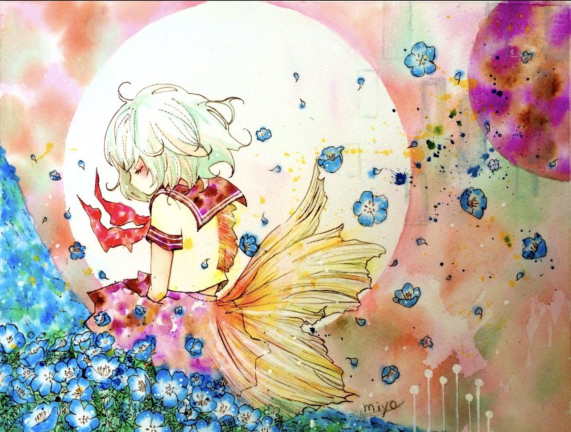 2 55 「明日はもう来なかったよ」 過去絵、今回の春の花もネモフィラを描いています🌸 🤍RTゆっくりまわります #絵 #イラスト #水彩 #春の創作クラスタフォロー祭り #絵描きさんと繋がりたい 22/04/02 15:12