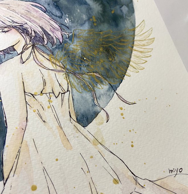 眠れぬ夜 いつかの夢をみる 完成しました。金と銀は角度を変化させるとキラキラします #イラスト #水彩 #絵描きさんと繋がりたい