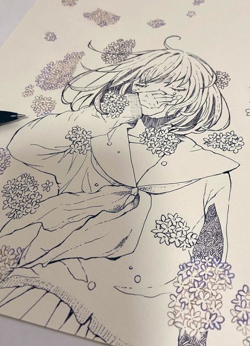 ペン入れ、とりあえずおわり。濃淡のバランスをみます 配色どうしようかな〜 #イラスト #絵描きさんと繋がりたい