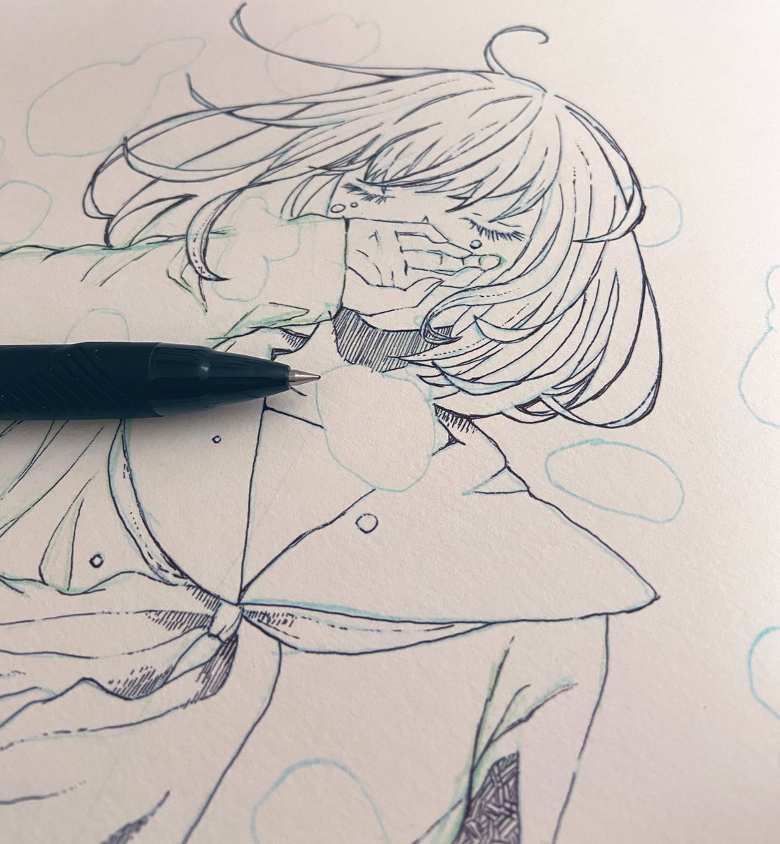 ペン入れ中🐳 まだまだ描き込みます #イラスト #制作中