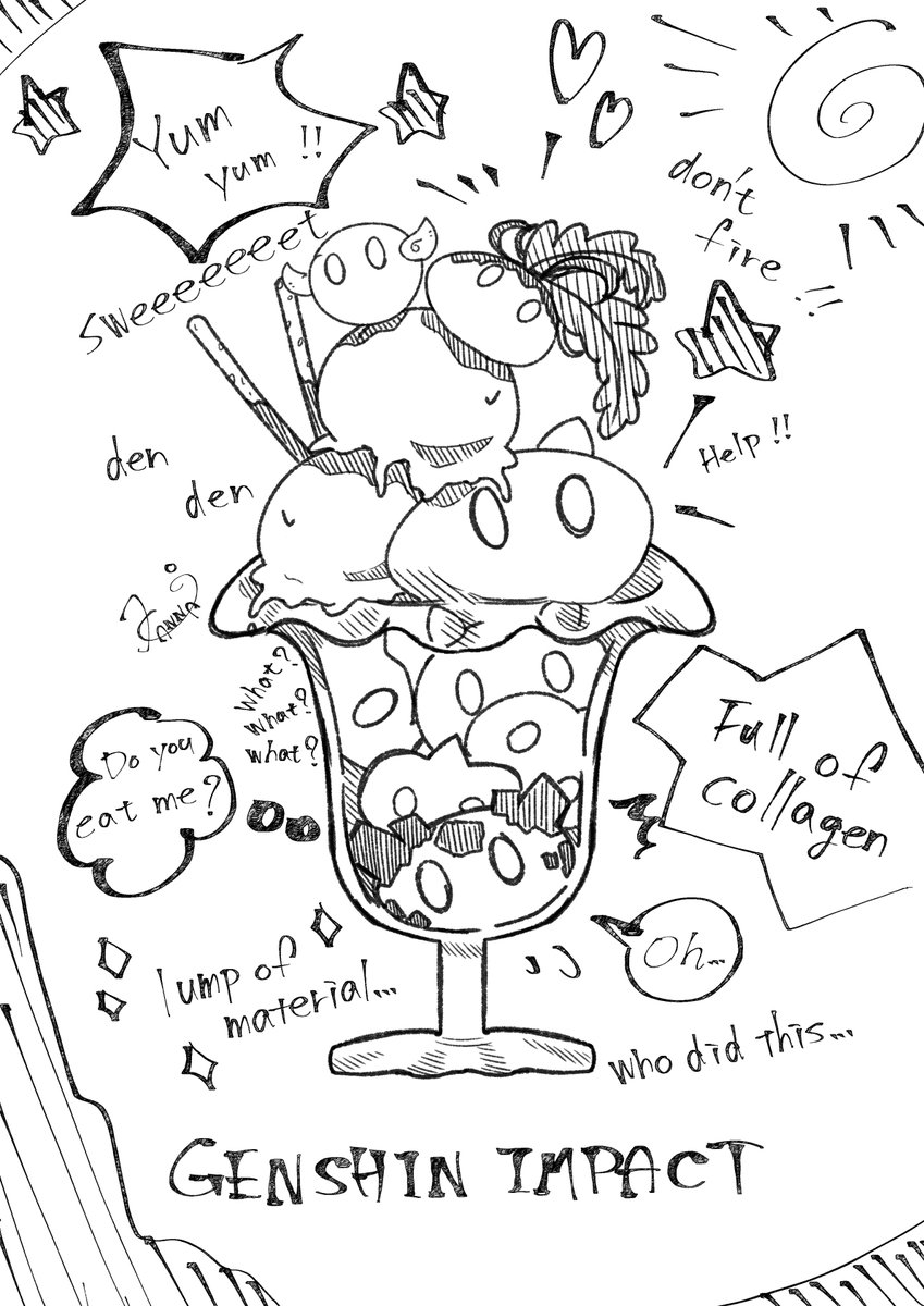原神のスライムをパフェにしてしまいました! 、、、な落書き。 うろ覚えで描いたのでスライムの柄とか省略してます。スミマセン、、、 リサイズして待ち受けとかにしたら可愛いなっておもって。 #原神 #Genshinlmpact #絵描きさんと繋がりたい